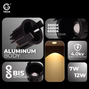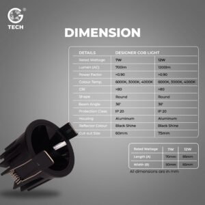 Elevate your interiors with the Designer COB Downlight, expertly crafted for modern living and premium commercial spaces. This recessed COB light features a stylish black shine reflector and a robust aluminum body, providing not only impactful illumination but also a touch of sophistication to any setting.