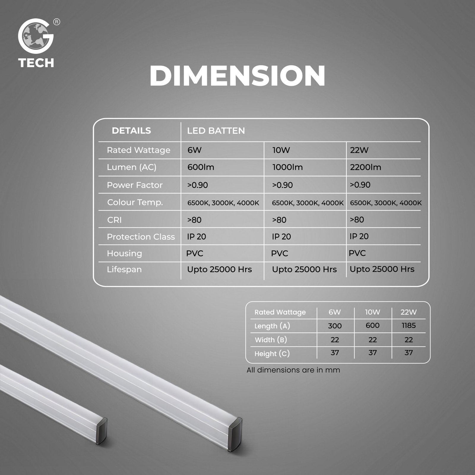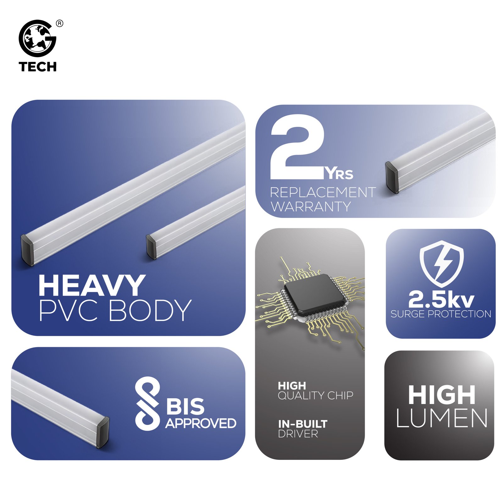 G TECH LED Batten delivers efficient, glare-free illumination wrapped in a sleek, minimalist PVC profile. This versatile fixture fits effortlessly in homes, offices, or commercial interiors—providing crisp, broad lighting wherever you need it. The modern design blends durability with easy installation, while advanced driver technology ensures stability and energy savings.