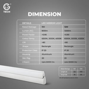 Choose G TECH LED Mirror Light for flawless, lasting lighting above bathroom mirrors, dressers, or any accent wall where clarity, safety, and aesthetics are essential.
