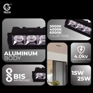 Redefine architectural lighting with G TECH Linear Light Black Reflector—a precision-engineered, recessed rectangular fixture built for contemporary environments. The bold black or gold reflector design delivers powerful, consistent light while minimizing glare, making it an ideal solution for workspaces, retail, hospitality, and luxury residential ceilings.