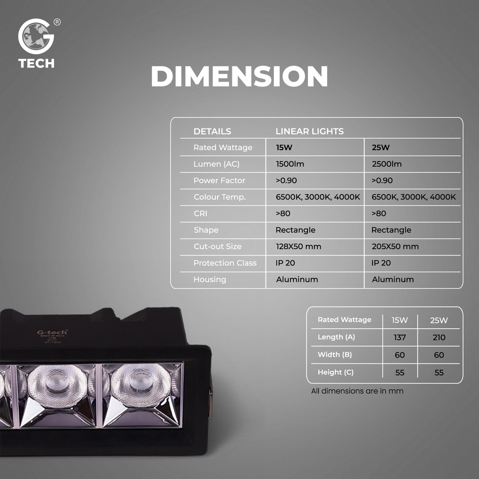 Redefine architectural lighting with G TECH Linear Light Black Reflector—a precision-engineered, recessed rectangular fixture built for contemporary environments. The bold black or gold reflector design delivers powerful, consistent light while minimizing glare, making it an ideal solution for workspaces, retail, hospitality, and luxury residential ceilings.​