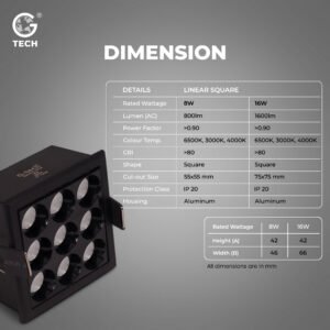 Enhance any contemporary ceiling with the G TECH Linear Square Downlight—a stylish recessed fixture using a multi-cell grid design for uniform, glare-controlled brilliance. Its bold, geometric profile delivers architectural elegance, while the engineered alloy reflector directs comfortable, flicker-free illumination—perfect for homes, art spaces, or retail highlights.​