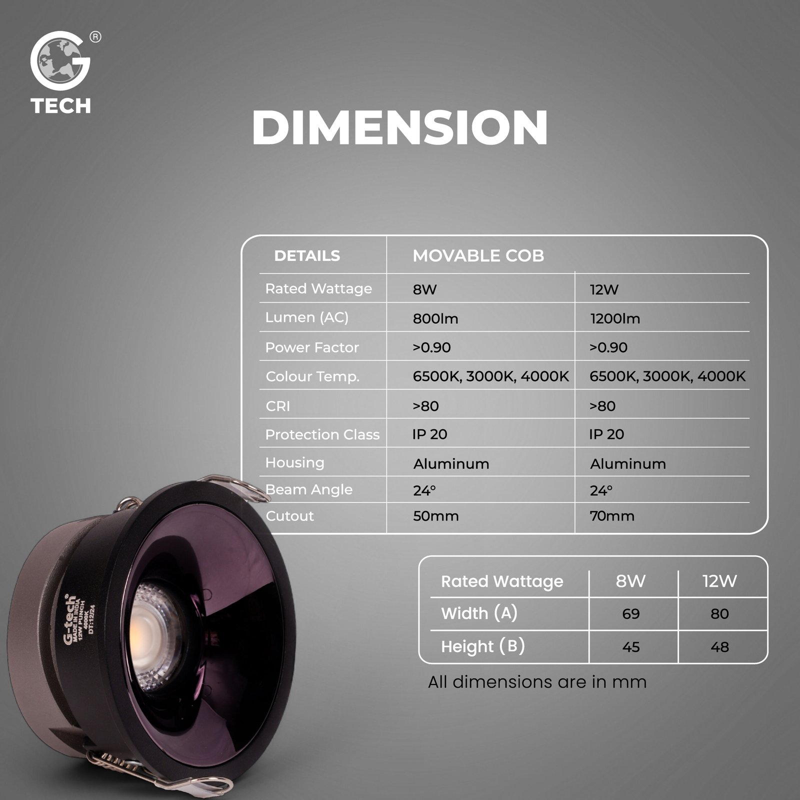 Movable COB Light | Anti-Glare, Adjustable Focus, Aluminum body