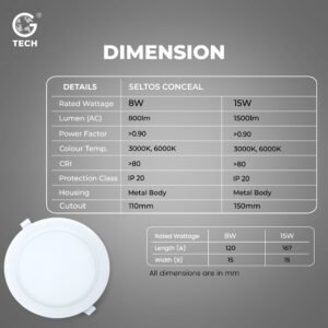 Add sophistication and efficiency to any interior with the G TECH Seltos Conceal Panel Light. This stylish recessed LED panel features an ultra-slim, minimalist design and robust all-metal body, delivering bright, uniform, and glare-free lighting for homes, offices, or hospitality spaces. Its flush-mount look makes ceilings appear clean and contemporary, while the engineered build delivers lasting performance for today’s interiors.​