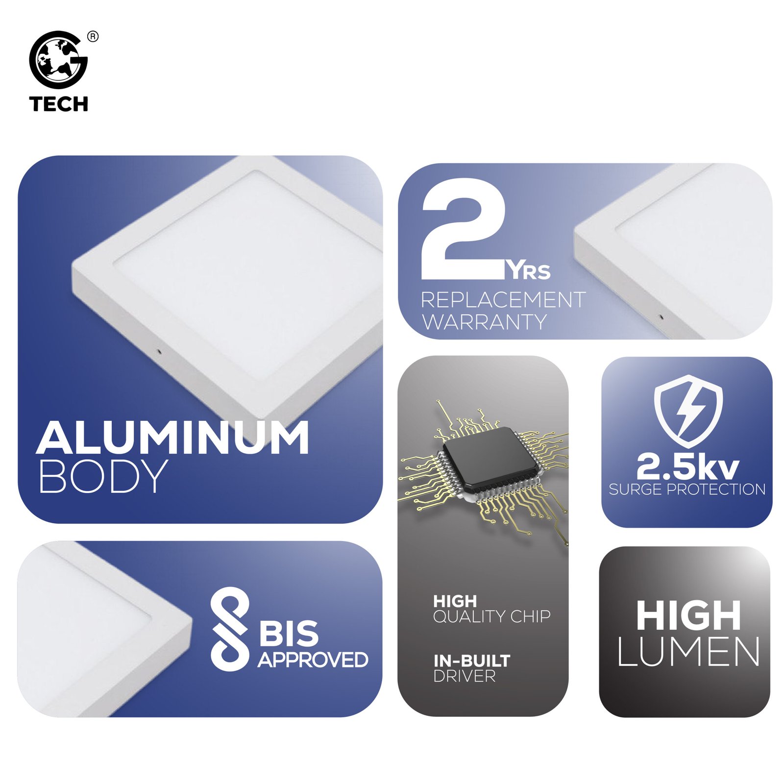 Seltos Surface Panel Light | High Lumen, Aluminum Body, Square
